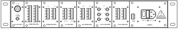 每臺(tái)機(jī)箱后面板配有1塊輸入模塊,1塊電源模塊和6塊輸出模塊;